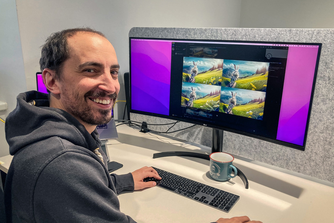 monitorwerbung Kärnten Grafiker Thomas Pirkopf bei der Erstellung des Spots mit Hilfe des KI-Tools Midjourney